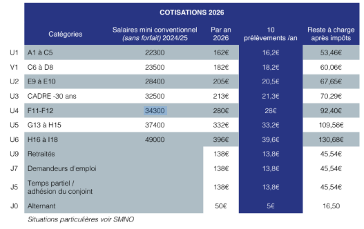 *Selon votre niveau de classification, votre cotisation annuelle reste inférieure à 0.8% du salaire brut annuel garanti.